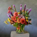 Our fresh arrangements come presented in reusable glass vases so they are ready to enjoy.