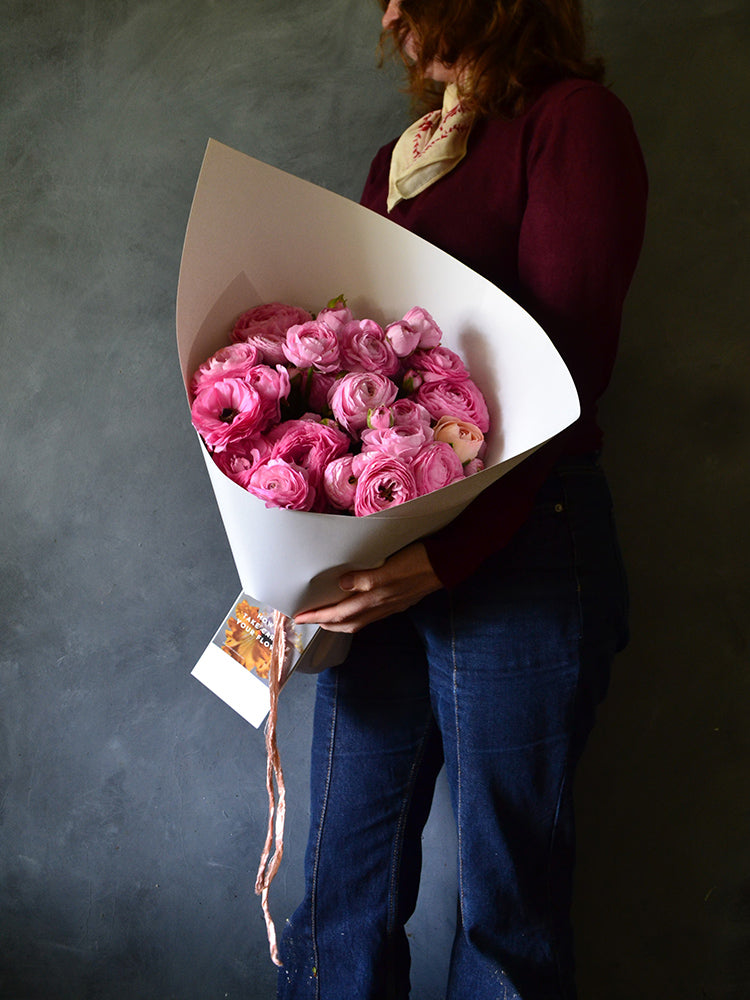 Nothing says 'spring is here' like a big, blousy bunch of ranunculus! Often mistaken for peonies, these gorgeous flowers are full to the brim with layers of petals that are revealed as they open.