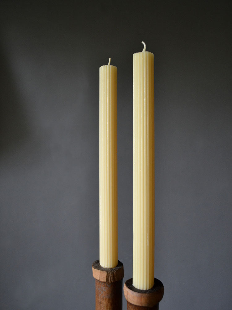 Made in Melbourne from 100% pure Australian beeswax. These ribbed beeswax candles are perfect for creating a warm, soft light in your home. Beeswax has a lovely, delicate honey scent when burning and creates much less mess than other wax.