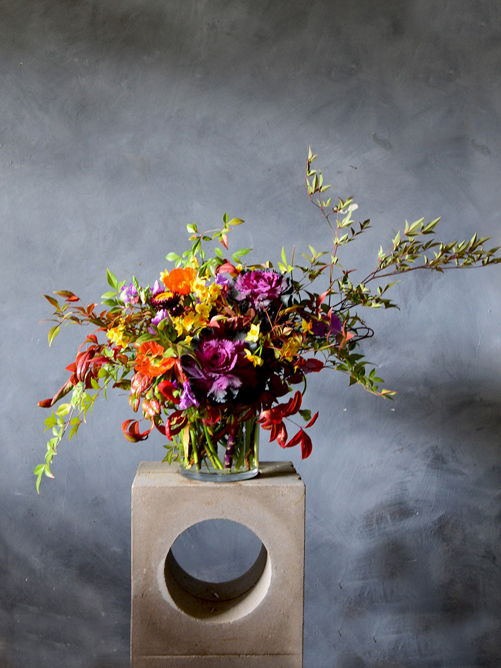 We source all of the flowers for this arrangement from local farms, and use only seasonal varieties. Images should be taken as a colour reference only.