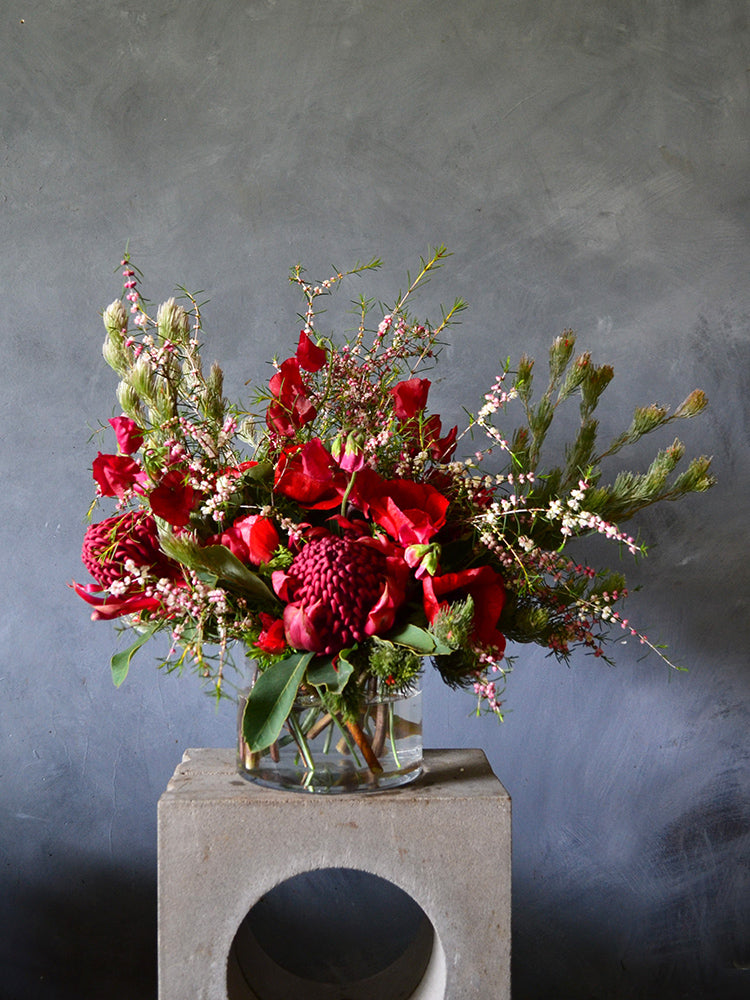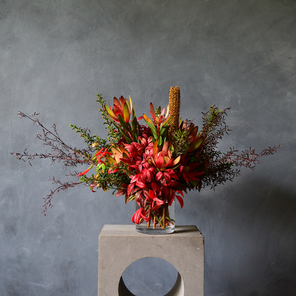 We select the blooms for this arrangement from our local flower farms and use only flowers that are in season to ensure the best quality. Each arrangement is unique and created with skill by our trained florists so no two vases are alike, therefore the images should be taken as a guide only.