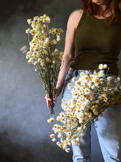 We dry all of our flowers in house without the use of chemicals, bleach or dyes. Their colour is completely natural, and all of our dried flowers are safe to touch and smell.