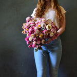 Dried paper daisies are a great way to add a long lasting pop of colour to your home! These pink coloured bunches are just perfect to make you (or a friend) smile.