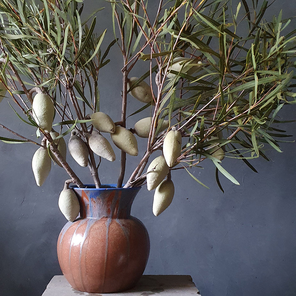 An unusual and striking native with a textured seed pod shaped like a pear. It has a great sculptural quality and looks amazing on its own or mixed with our dried mulla-mulla or hydrangea.
