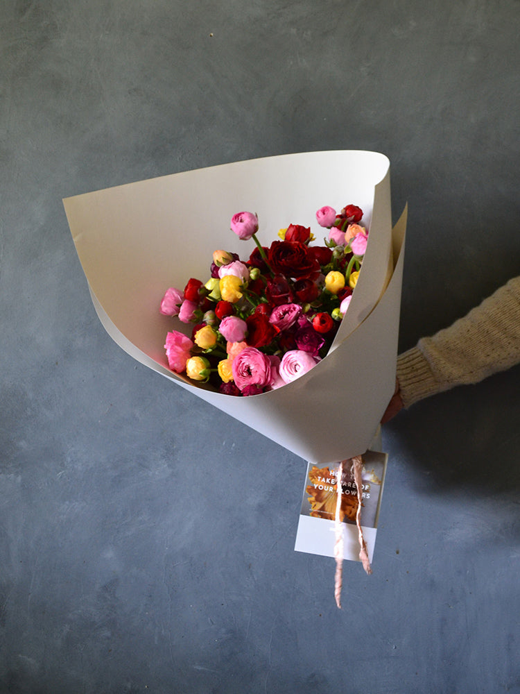 Nothing says 'spring is here' like a big, blousy bunch of ranunculus! Often mistaken for peonies, these gorgeous flowers are full to the brim with layers of petals that are revealed as they open.