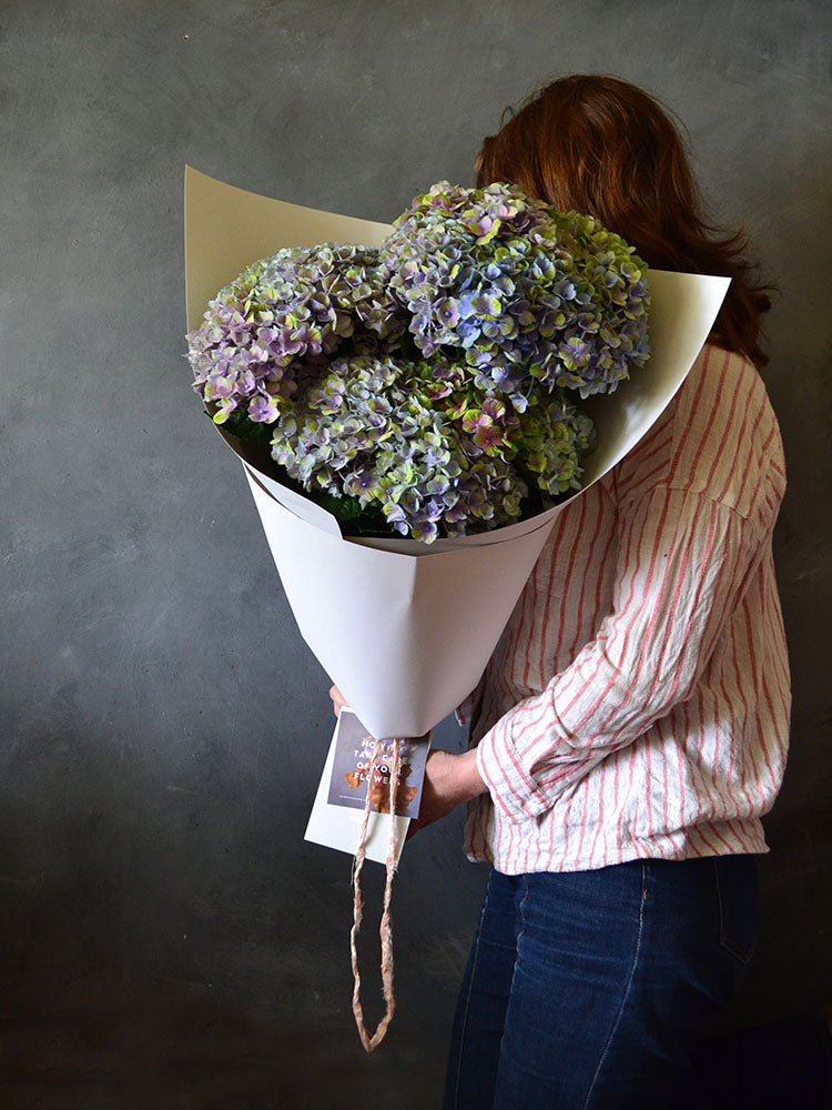 Nothing says summer like a big, blousy bunch of hydrangea! They come in a huge range of colours which change regularly throughout the season, so images are for size reference only.