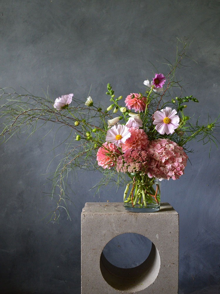 Our fresh arrangements come presented in reusable glass vases so they are ready to enjoy.