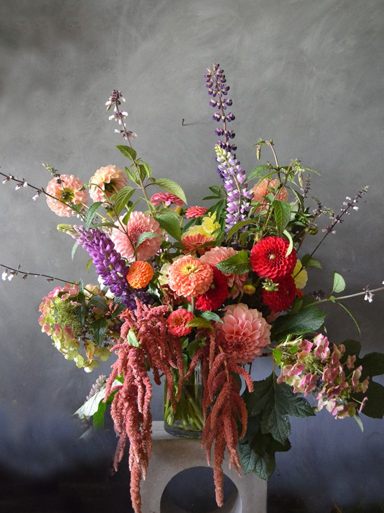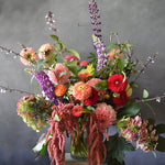 We source all of the flowers for this arrangement from local farms, and use only seasonal varieties. Images should be taken as a colour reference only.