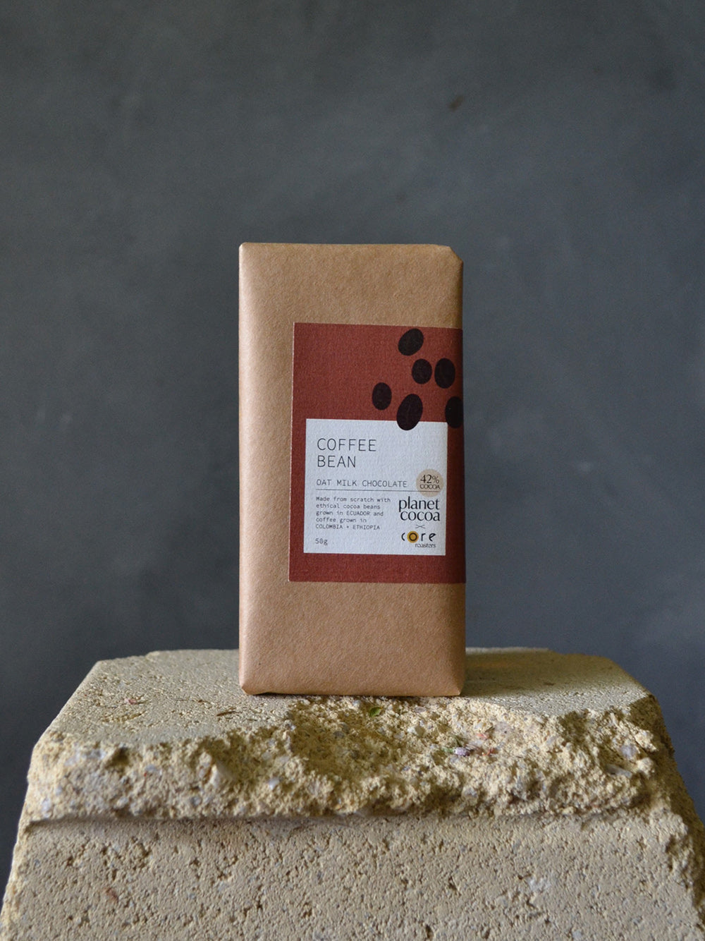 DIETARY NOTES: vegan friendly, no nuts, contains gluten (oats). Each block of coffee bean chocolate is 50g.
