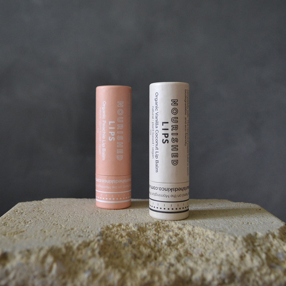 • A set of Nourished Skin Co organic lip balms in Peachie and Vanilla Coconut. Based on the Mornington Peninsula, their lip balms are full of hydrating ingredients like shea butter, cocoa butter, coconut oil + candelilla wax. Plus, the tubes are biodegradable!