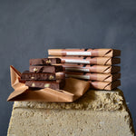 • A block of Caramel Pecan chocolate from Planet Cocoa. Made with crunchy Trois Bon salted caramelised pecan and smooth, stoneground chocolate.