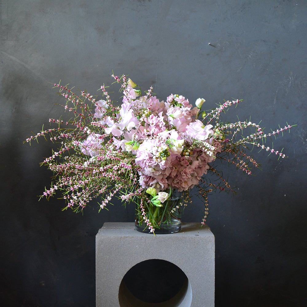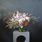 • A vase of fresh flowers in your choice of size & palette, presented ready to enjoy in a reusable glass vase.
