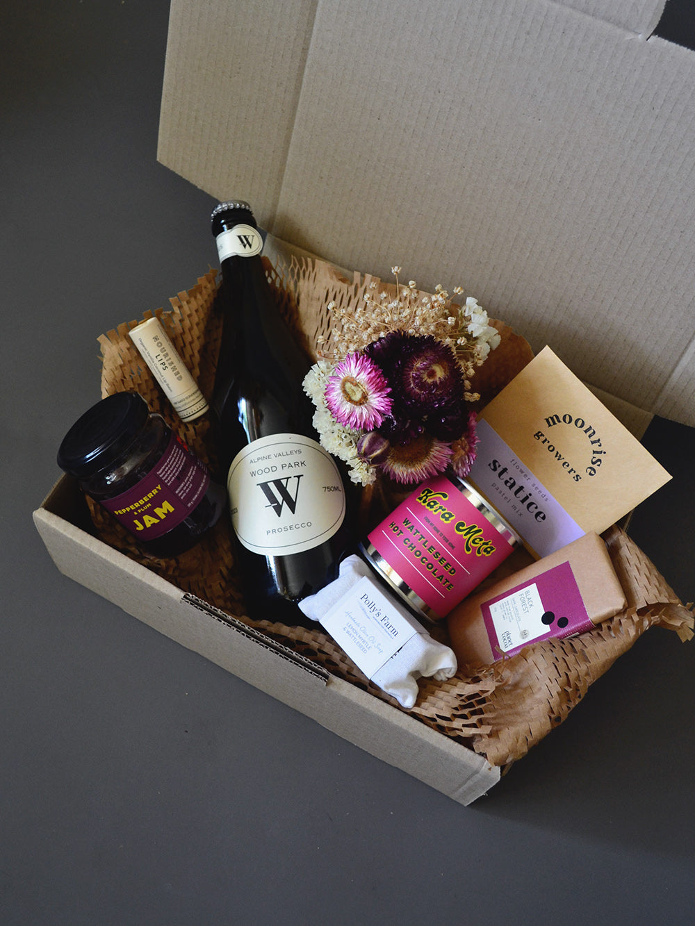 • A bottle of Wood Park prosecco from the King Valley. Deliciously crisp with fresh green apple notes.