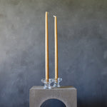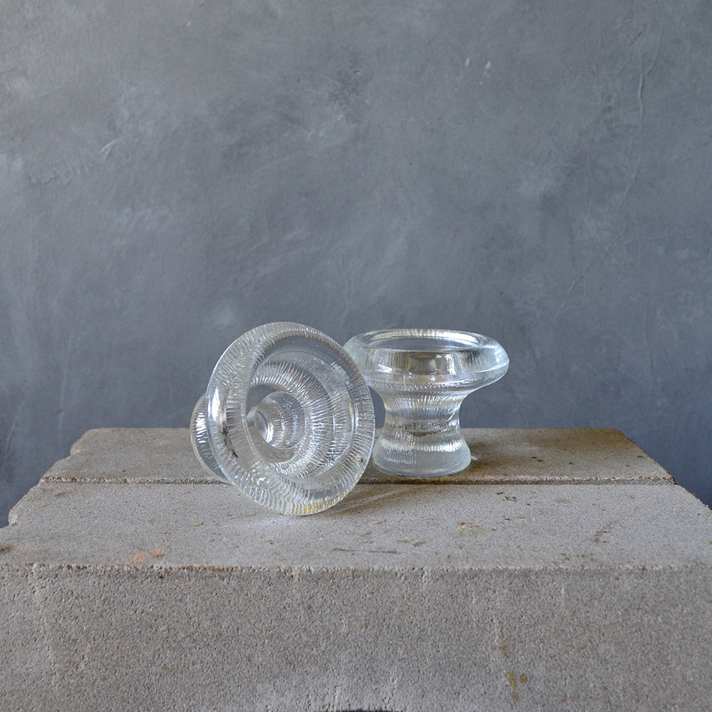 This set of timeless vintage candle holders feature heavy glass with a ribbed finish and a sweet ‘mushroom’ shape. They look amazing with our natural tapered candles and are great to display on your table or shelf.