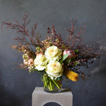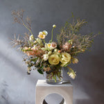 We select the blooms for this arrangement from our local flower farms and use only flowers that are in season to ensure the best quality. Each arrangement is unique and created with skill by our trained florists so no two vases are alike, therefore the images should be taken as a guide only.