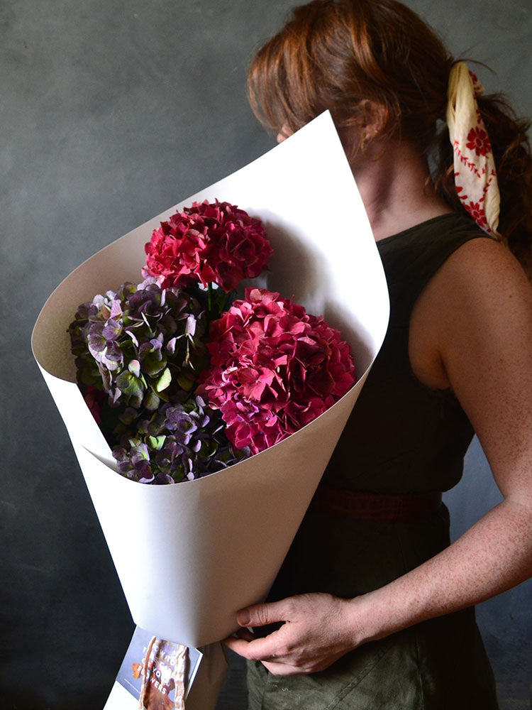 Nothing says summer like a big, blousy bunch of hydrangea! They come in a huge range of colours which change regularly throughout the season, so images are for size reference only.