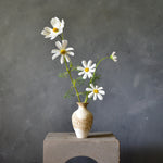 Whilst we have photographed it with fresh cosmos stems, the inside of this vase is unglazed. Due to the porous nature of clay, it is not watertight and best suited to dried flowers.