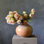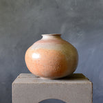A lovely, pale pinky-peach clay over a neutral base, blended beautifully around the vase. The larger size and shape makes it a bold piece for your collection, and it looks amazing with native-style flowers arranged into it. In perfect condition!