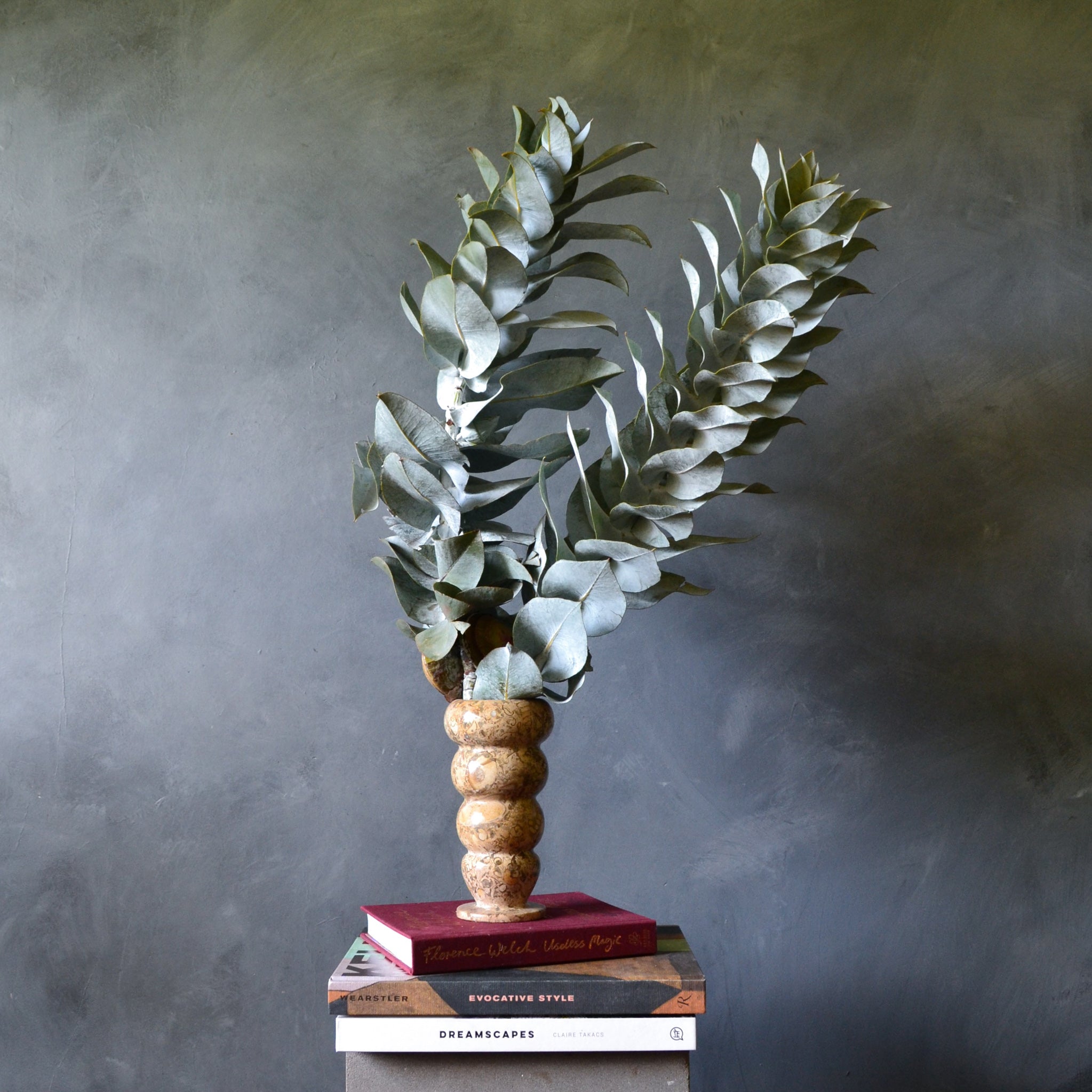 We dry these eucalyptus macrocarpa right here in the studio, naturally over time.