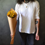 Our packaging is reusable, recyclable or compostable - all of it! Because we don't use imported or dyed flowers, you can safely pop them straight in the green waste.