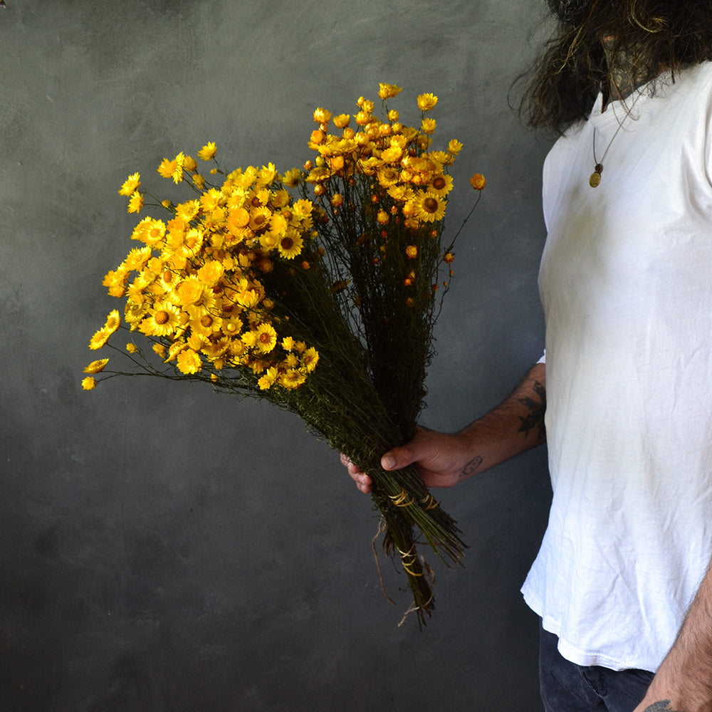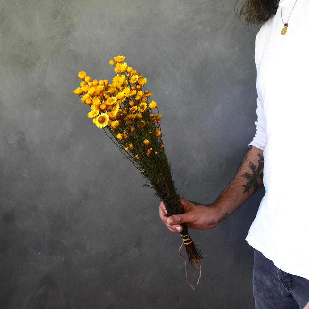 Golden bursts of everlasting sunshine! These sweet, naturally dried paper daisies feature delicate flower heads full of papery petals. The rich, golden yellow is so beautiful and the perfect way to give your space a lift.