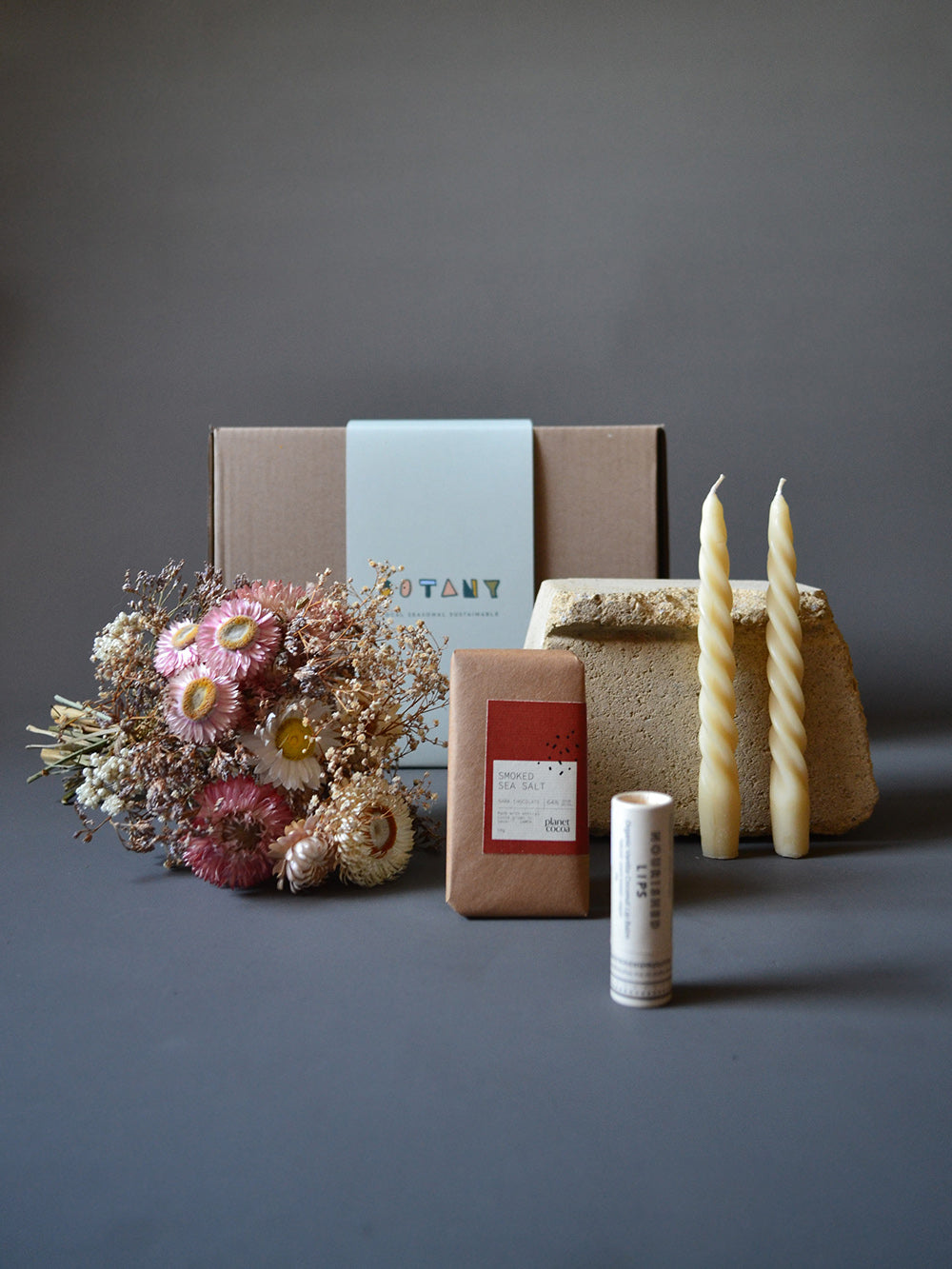 • A mini posy of locally grown, naturally dried flowers.