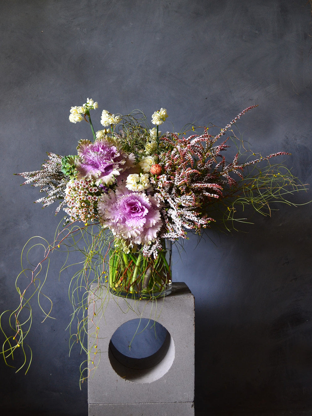 We source all of the flowers for this arrangement from local farms, and use only seasonal varieties. The images should be taken as a colour reference only.