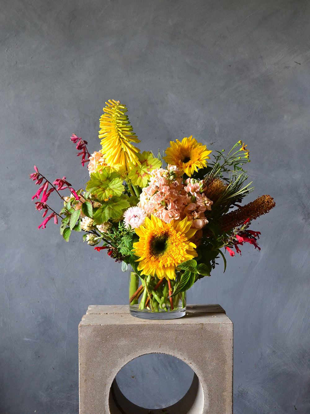 Our fresh arrangements come presented in reusable glass vases so they are ready to enjoy.