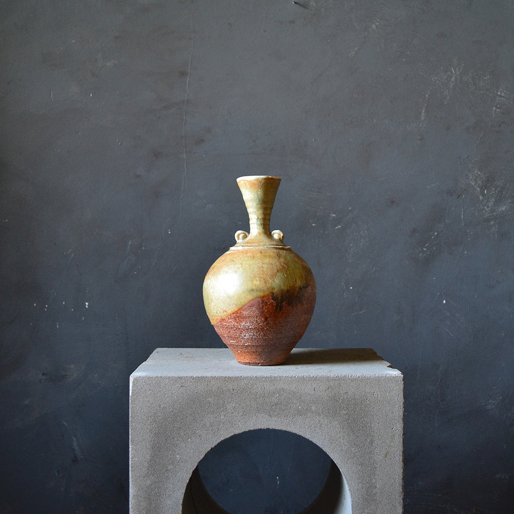 A beautiful, heavy-based vintage vase with an amazing glaze, perfect for holding a dried flower stem. This would look great with one or two bunny tail grasses in it.